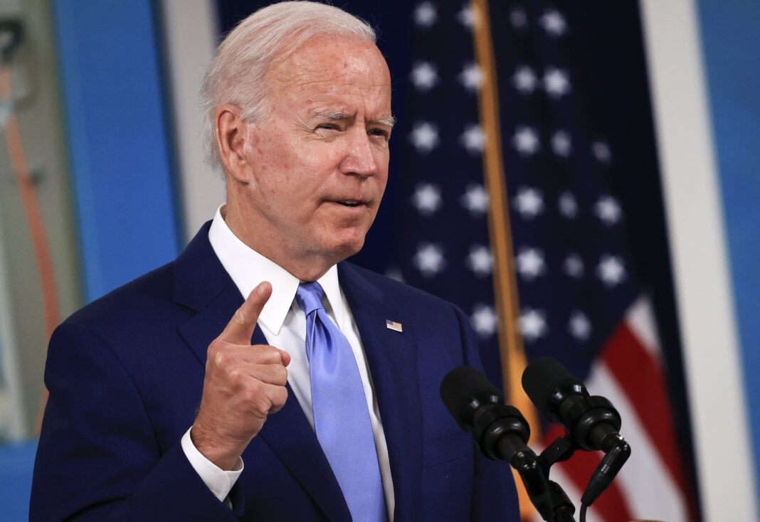 U.S. President Joe Biden delivers remarks on the September jobs numbers in the South Court Auditorium in the Eisenhower Executive Office Building on October 08, 2021 in Washington, DC.